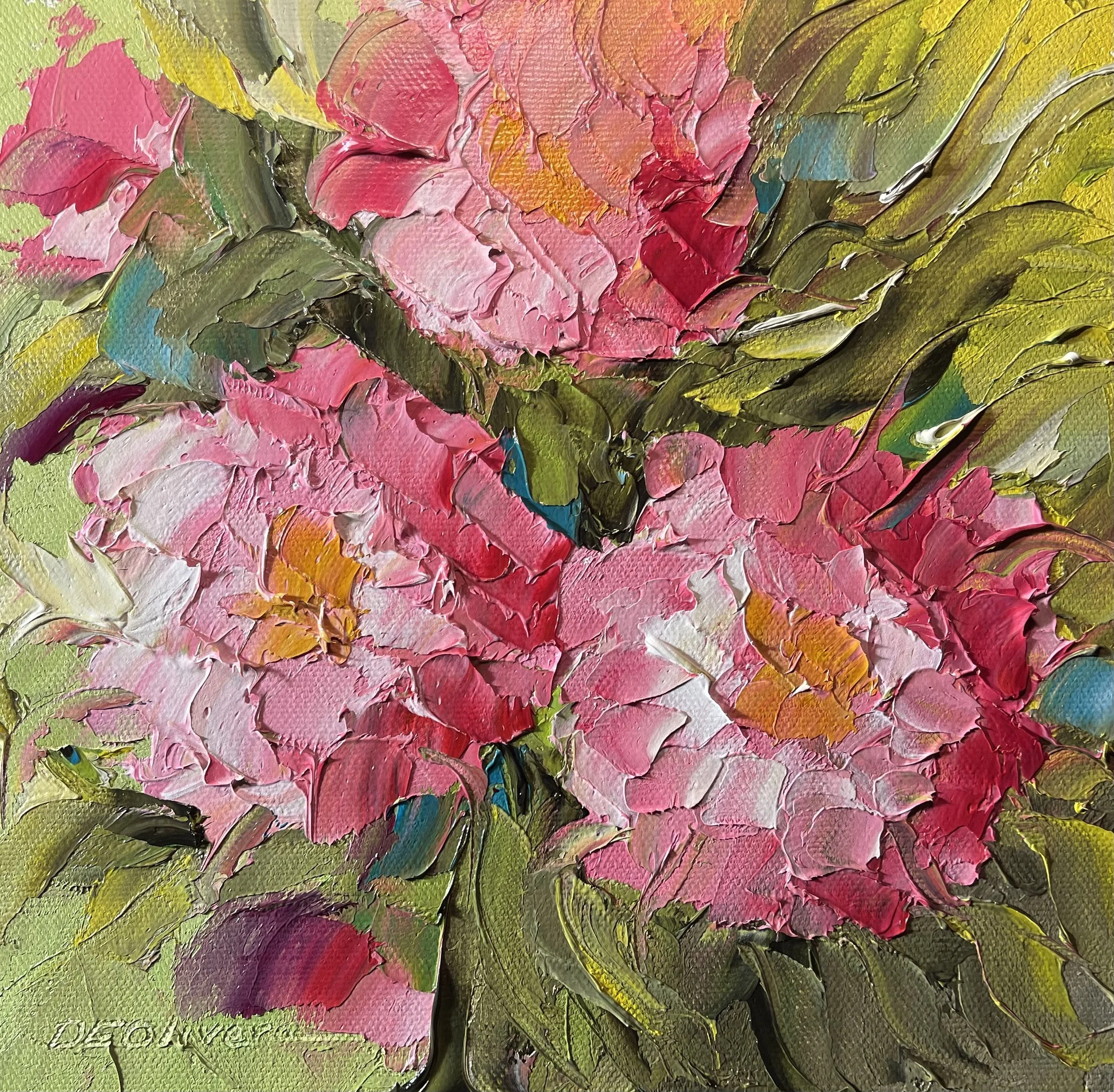 “I call it pushing paint—painting with a palette knife instead of a brush to develop more dimension and direct the light. I had been searching for a way to keep from going too tight, too rigid…and it took on a life of its own. I really enjoy being able to call that flower or face out of the canvas, but keep all the nuances of tone and texture.